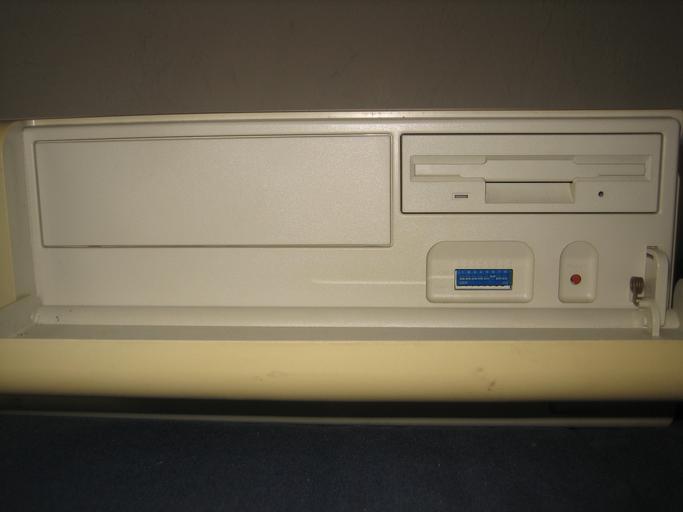 Keywords: Sony NeWS NWS-3710 03.JPG en Detailed view of the front of a Sony NWS-3710 RISC workstation with its front cover tilted down exposing an unused 5 1/4 drive bay for a CDROM perhaps floppy drive configuration dip switch and reset button Own SupremeDalek 2009-01-01 Sony NEWS 3 5 floppy disk drives |