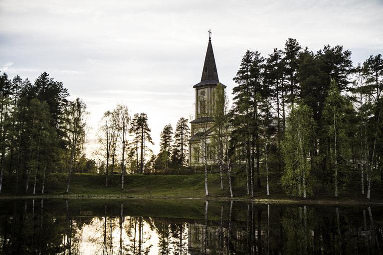 Keywords: sotkamo summer water trees cloud lake finnish sky clouds wood church beach landscape