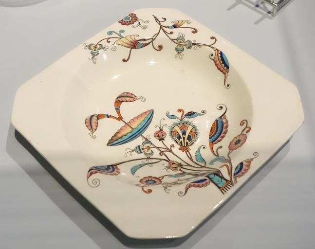 | Keywords: Soup Plate in Persia Pattern, Christopher Dresser (1834-1904), made by Old Hall Earthenware Co. (1862-1887), Stoke-on-Trent, Hanley, England, glazed earthenware - Brooklyn Museum - Brooklyn, NY - DSC08871.JPG en Exhibit in the Brooklyn Museum - Brooklyn New York USA This artwork is in the public domain because the artist died more than 70 years ago Photography was permitted in the museum without restriction 2013-10-30 13 01 04 own Daderot other versions cc-zero English pottery in the Brooklyn Museum Uploaded with UploadWizard Christopher Dresser |