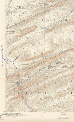 | Keywords: Sources of Nesquehoning creek from hzlt93sw map excerpt.jpg en Re-rotated unrotated re-upload of File Sources of Nesquehoning creek from hzlt93sw-Rot90cw JPG bullR This map serves the same function but with the sources of the Nesquehoning written sideways bullR This version shows various drainage basins the drainage divides between the Lehigh River basin and the Little Schuylkill River basin in the Ridge-and-Valley Appalachians barrier ridge folded landform landscapes of this important industrial region and the drainage/river systems which inhibited transportation bullR This orientation is useful for displaying the complex rail network worked into the mountainous terrain still important and in use today the key drainage basin s and especially the ridges with the drainage divides involving two counties above the historic Anthracite coal mining and rail transport railroad communities of <br> Weatherly PA Beaver Meadows PA Delano PA Hometown PA Tamaqua PA Coaldale PA Lansford PA and extremely influential in the bootstrapping of United States the U S Industrial Revolution ---- Tamaqua co-ords 40° 47 ² 55 ³ N 75° 57 ² 59 ³ W 40 798611 -75 966389 Broad Mountain Lehigh Valley Broad Mountain co-ords 405343N 0754944W Tower Carbon County Pennsylvania 405435N 0754824W Northern Peak Carbon County 404649N 0760838W Southern Peak Schuylkill County Pennsylvania 2016-09-10 USGS 1893 topological maps Fabartus PD-USGov other versions thumb Derivation -1st annotated version Prominent in the center is w Broad Mountain Lehigh Valley part of which is partially off the right edge Paralleling Broad Mountain are Nesquehonning Ridge Pisgah Ridge joined in the high prominence Mount Pisgah Carbon County Pennsylvania Mount Pisgah looming over historic Mauch Chunk PA Jim Thorpe across the Lehigh River Lower Lehigh River Lehigh Canal Lower Lehigh Canal headend terminus from the higher Bear Mountain Lehigh Valley together framing the Panther Creek Valley terminating in Tamaqua PA and Mauch Chunk Ridge ; the area first exploited for Anthracite mining in Pennsylvania 1st Annotated version same map shown at right File Sources of Nesquehoning creek from hzlt93sw map excerpt drainage divides antd-en jpg File Sources_of_Nesquehoning_creek_from_hzlt93sw_map_excerpt jpg File Sources of Nesquehoning creek from hzlt93sw-Rot90cw JPG bullR See also Modern relief map covering same terrains File USGS relief-Broad Mountain and Terrains it dominates west of the Lehigh Gorge and north of Tamaqua Nesquehoning and Jim Thorpe PA png bullR Other annotated versions may follow as article about the area are developed // <B>Fra</B><font color green >nkB</font> 19 31 21 December 2016 UTC Landforms of Luzerne County Pennsylvania Landforms of Carbon County Pennsylvania Landforms of Schuylkill County Pennsylvania Lehigh Valley Lehigh Valley railroads Nesquehoning Creek 1893 maps of Pennsylvania Northeastern Pennsylvania Topomaps USGS MRC40075-series of corners N40xW75 to N41xW76 Nesquehoning 1 |