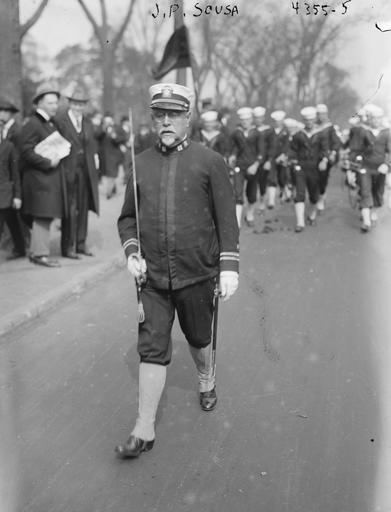| Keywords: SousaWithBatonGreatLakesBand.jpg U S composer and conductor John Philip Sousa marching in front of the Great Lakes Navy Band Bain News Service photo via Library of Congress website http //hdl loc gov/loc pnp/pp ggbain; converted from TIFF to jpg and border cropped before upload Not dated c 1910s - 1920s Unnamed photographer for Bain News Service PD-Bain John Philip Sousa | ||||
