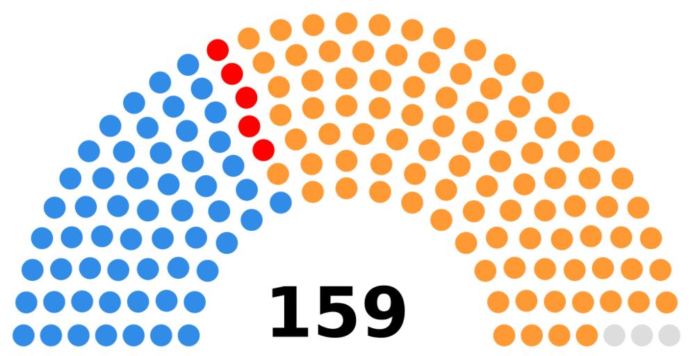 | Keywords: South African House of Assembly 1953.svg 318CE7 United Party 57 seats FF0000 Labour Party 5 seats FF9933 National Party 94 seats DDDDDD Independent 3 seats 2016-02-06 own MB298 other versions cc-zero Election apportionment diagrams of South Africa |
