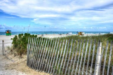 Keywords: south beach sand fence sky clouds parachute landscape ocean summer florida nature travel tropical vacation water paradise seascape tourism sunshine sunny outdoor scenic shore day