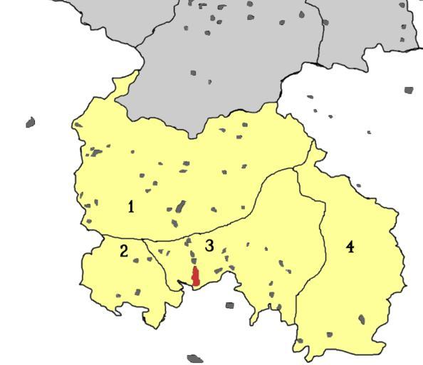 Keywords: South Ossetia rayons and capital.png en Rayons yellow numbered and the capital city red of the unrecognized Republic of South Ossetia The borders according to the Soviet ones Rayons 1 Dzau rayon 2 Znaur rayon 3 Tskhinval rayon 4 Leningor rayon The light grey territory to the north is North Ossetia Alania Republic of the Russian Federation; dark grey are some of the towns and villages ru Районы жёлтые п онуме ованные и столица к асная неп изнанного госуда ства ru Южная Осетия 1 Дзауский айон 2 Знау ский айон 3 Цхинвальский айон 4 Ленинго ский айон Се ым залита те ито ия Севе ной Осетии в составе РФ Тёмно-се ые пятна некото ые населённые пункты Locator maps of South Ossetia 2006-04-04 own assumed Slavik IVANOV