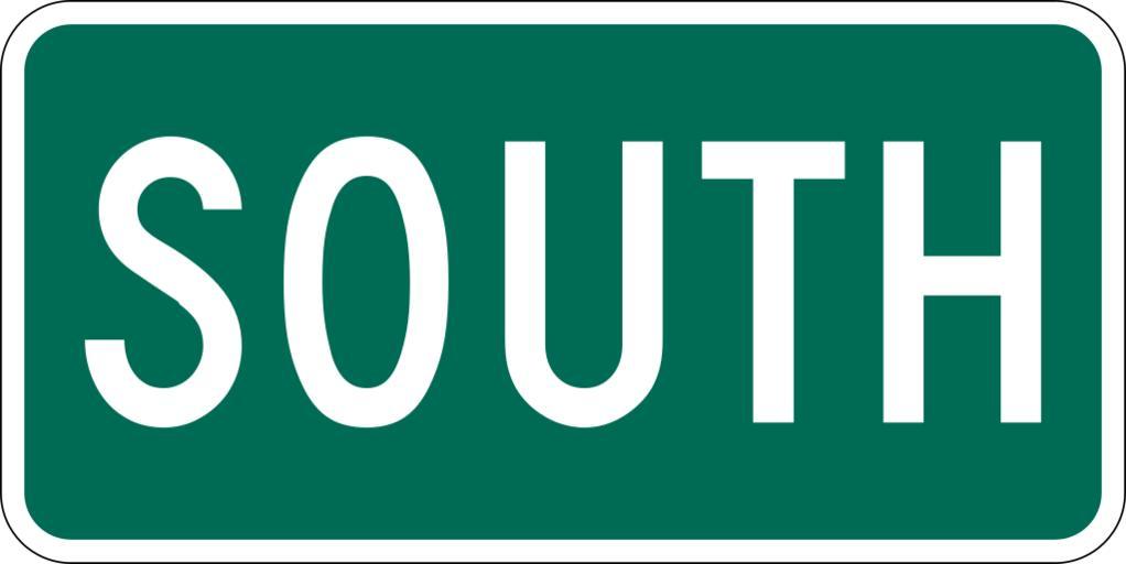 Keywords: South plate small green.svg 600 mm by 300 mm 24 in by 12 in south plate with small letters made to the specifications of the http //mutcd fhwa dot gov/SHSm/Guide pdf 2004 edition of Standard Highway Signs sign M3-3 Uses the http //www triskele com/fonts/index html Roadgeek 2005 fonts United States law does not permit the copyrighting of typeface designs and the fonts are meant to be copies of a U S Government-produced work anyway Colors are from http //mutcd fhwa dot gov/kno-colorspec htm Pantone Green 342 converted to RGB by http //www reeddesign co uk/test/pantone2rgb html The outside border has a width of 1 1 mm and a color of black so it shows up; in reality signs have no outside border own Ltljltlj User Ltljltlj/Template M3-3 - Cardinal Direction Auxiliary Diagrams of green and white road signs |