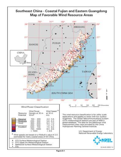 | Keywords: Southeast China - Coastal Fujian and Eastern Guangdong - Map of Favorable Wind Resource Areas.png en Southeast China - Coastal Fujian and Eastern Guangdong - Map of Favorable Wind Resource Areas 2002-08-22 http //www nrel gov/wind/international_wind_resources html National Renewable Energy Laboratory NREL other versions PD-USGov Uploaded with UploadWizard Wind power in China Mean wind speed maps | ||||