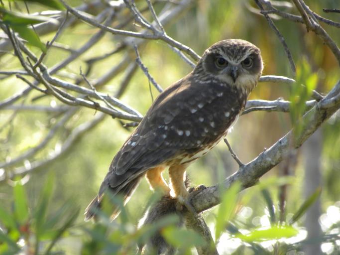 Keywords: southern boobook owl predator bird bird of prey eyes nocturnal face portrait feathers raptor symbol wise tree branches perched