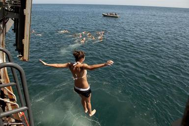 | Keywords: Southern Partnership Station 2010 DVIDS294769.jpg en Sailors and Marines take the opportunity during a swim call to leap from the well deck of USS New Orleans after participating in the Crossing the Line ceremony Amphibious Squadron 5 USS New Orleans and embarked Navy and Marine Corps units are participating in Southern Partnership Station 2010 a combined amphibious exercise designed to enhance cooperative partnerships with maritime forces from Argentina Mexico Peru Brazil Uruguay and Colombia 2010-06-27 Petty Officer 1st Class Brien Aho https //www dvidshub net/image/294769 100627-N-+++++-218 2010-06-29 10 53 USS NEW ORLEAN AT SEA PD-USGov-Military-Navy Southern Partnership Station 2010 Images from DoD uploaded by Fæ |