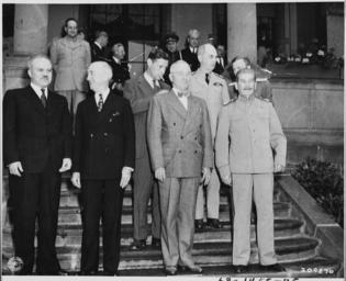 Keywords: Soviet leader Josef Stalin meets President Harry S. Truman for the first time at the "Little White House," the... - NARA - 198842.tif Scope and content General notes 198842 Local identifier National Archives and Records Administration Office of Presidential Libraries Harry S Truman Library 04/01/1985 - Harry S Truman Library NLHST 500 West U S Highway 24 Independence MO 64050-1798 1945-07-17 Record group Collection HST-AVC Audiovisual Collection 1957 - 2006 Record group ARC 1207 Photographs Relating to the Administration Family and Personal Life of Harry S Truman compiled 1957 - 2004 documenting the period 1849 - 2004 Series ARC 198606 File unit File unit ARC Variant control numbers NAIL Control Number NLT-AVC-PHT-63 1455 75 yes Other versions <gallery> File Soviet_leader_Josef_Stalin_meets_President_Harry_S _Truman_for_the_first_time_at_the_ Little_White_House _the _-_NARA_-_198842 tif tif File Soviet_leader_Josef_Stalin_meets_President_Harry_S _Truman_for_the_first_time_at_the_ Little_White_House _the _-_NARA_-_198842 jpg jpg </gallery> NARA-cooperation PD-USGov William D Leahy at the Potsdam Conference James Francis Byrnes at the Potsdam Conference Joseph Stalin and Harry S Truman at the Potsdam Conference Vyacheslav Molotov at the Potsdam Conference Charles E Bohlen at the Potsdam Conference NARA TIF images with categorized JPGs |