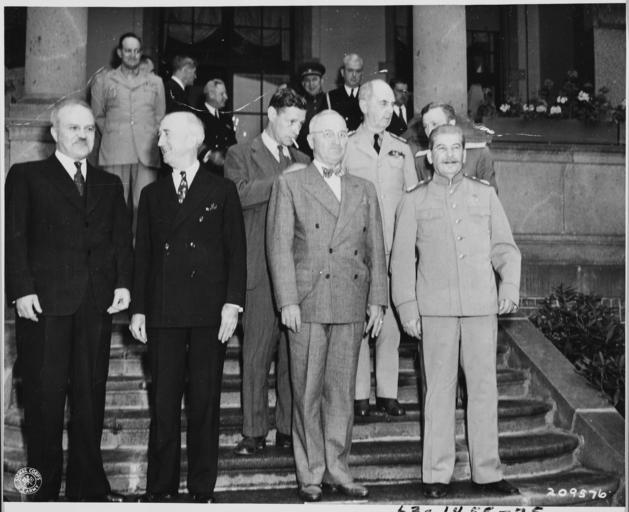 Keywords: Soviet leader Josef Stalin meets President Harry S. Truman for the first time at the "Little White House," the... - NARA - 198842.jpg Scope and content General notes 198842 Local identifier National Archives and Records Administration Office of Presidential Libraries Harry S Truman Library 04/01/1985 - Harry S Truman Library NLHST 500 West U S Highway 24 Independence MO 64050-1798 1945-07-17 Record group Collection HST-AVC Audiovisual Collection 1957 - 2006 Record group ARC 1207 Photographs Relating to the Administration Family and Personal Life of Harry S Truman compiled 1957 - 2004 documenting the period 1849 - 2004 Series ARC 198606 File unit File unit ARC Variant control numbers NAIL Control Number NLT-AVC-PHT-63 1455 75 Other versions <gallery> File Soviet_leader_Josef_Stalin_meets_President_Harry_S _Truman_for_the_first_time_at_the_ Little_White_House _the _-_NARA_-_198842 tif tif File Soviet_leader_Josef_Stalin_meets_President_Harry_S _Truman_for_the_first_time_at_the_ Little_White_House _the _-_NARA_-_198842 jpg jpg </gallery> NARA-cooperation PD-USGov William D Leahy at the Potsdam Conference James Francis Byrnes at the Potsdam Conference Joseph Stalin and Harry S Truman at the Potsdam Conference Vyacheslav Molotov at the Potsdam Conference Charles E Bohlen at the Potsdam Conference |