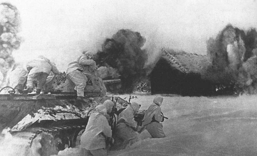 Keywords: Soviet T-34 with desant rushing into village.jpg ru Советский танковый десант п и подде жке танка Т-34 атакует занятую п отивником де евню в кото ой видны аз ывы огневого вала Западный ф онт декаб ь 1941 1941 http //waralbum ru/151448/ author Custom license marker 2014 02 22 PD-Russia 1941 in Russia Battle of Moscow Uploaded with UploadWizard