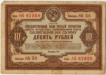 | Keywords: Soviet Union-1940-Bonds-10-Obverse.png Soviet Union bond 1940 10 rubles obverse Облигация госуда ственного займа СССР 1940 год 10 ублей лицевая сто она Banknote is courtesy of collector who wants to remain anonymous Thank you I scanned this image Банкнота п едоставлена коллекционе ом пожелавшим остаться анонимным Спасибо Отскани овано мной 1940 Bonds of the Soviet Union PD-RU-exempt | ||||