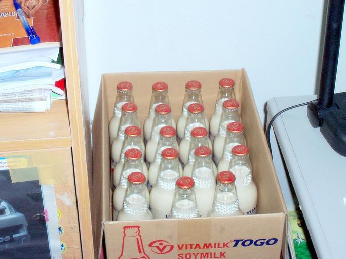 Keywords: Soy milk bottles 2.jpg en Brightened version of the older dark photo http //commons wikimedia org/wiki/File Soy_milk_bottles jpg Love Krittaya 2004 Soy milk cc-zero