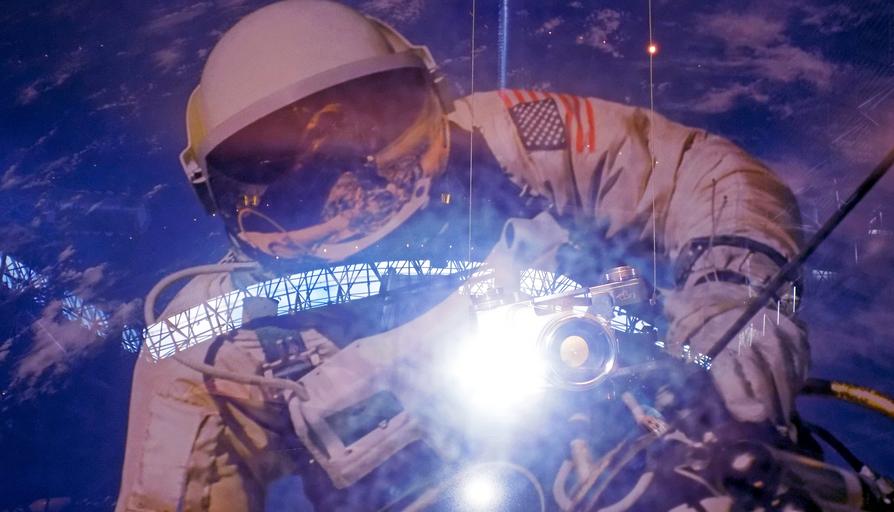 | Keywords: zeiss contarex camera ed white edwhite nasa space walk spacewalk gemini iv geminiiv astronaut Picture of a picture of Ed White "walking" in space with a Zeiss Contarex camera and lens during Gemini IV mission. The camera is real and part of the display. Background reflection shows hangar at Smithsonian Air & Space Museum. Picture of a picture of Ed White "walking" in space with a Zeiss Contarex camera and lens during Gemini IV mission. The camera is real and part of the display. Background reflection shows hangar at Smithsonian Air & Space Museum. |