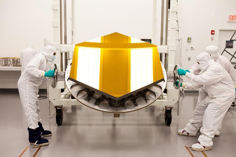 Keywords: space telescope telescope mirror scientists gold inspection space test technology mirror segments james webb cosmos science scientific astronomy study precision manufacturing astrophotography