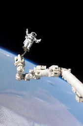 Keywords: space walk astronaut international space station steve robinson canadarm2 iss