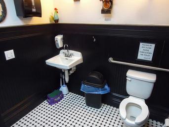 | View Original: | Spacious clean bathroom with artwork on walls and two mirrors at the Maplewood Deli & Grille in New Jersey.JPG (2592x1944) | |||