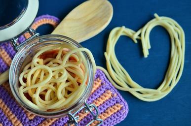Keywords: spaghetti pasta noodles eat lunch food italian cook bolognese carbohydrates meal invitation heart loving jar