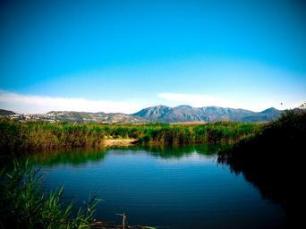 Keywords: spain lake water reflections mountains scenic vista plants trees nature outside country countryside summer spring
