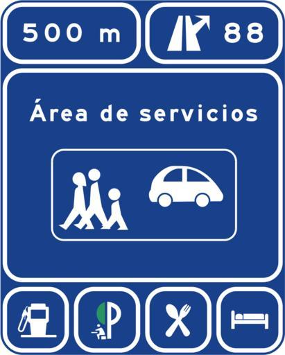 | Keywords: Spain traffic signal s271 1.svg es S-271 Preseñalización de área de servicio TAL COMO APARECE EN EL REGLAMENTO Reglamento General de Circulación del Reino de España Benedicto16 Diagrams of road signs of Spain Rest areas in Spain Road signs in Spanish language |