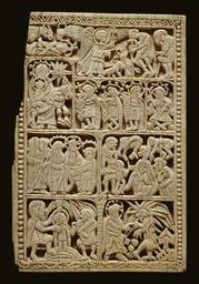 | Keywords: Spanish - Book-Cover Plaque with Scenes of the Life of Christ - Walters 7150.jpg  This intricate plaque illustrates scenes from the early life of Christ beginning with the Nativity and the Annunciation to the Shepherds In the second tier are the Flight into Egypt the Adoration of the Magi and Herod pointing to the scene below of the Massacre of the Innocents At the left is the Presentation in the Temple and at the bottom are the Baptism and First Temptation of Christ with the Devil appearing as a beast with claws and sharp spines century 9 Medieval ivory cm 13 5 9 1 0 5 accession number 71 50 20048 Henri Daguerre Paris Henry Walters 1924 by purchase Walters Art Museum Henry Walters Acquired by Henry Walters 1924 Ivory The Sumptuous Art The Walters Art Gallery Baltimore 1983-1984 place of origin Asturias Spain Walters Art Museum license Medieval ivory in the Walters Art Museum Art of Spain Medieval book covers Temptation of Jesus Christ in sculpture Media contributed by the Walters Art Museum needs category review |