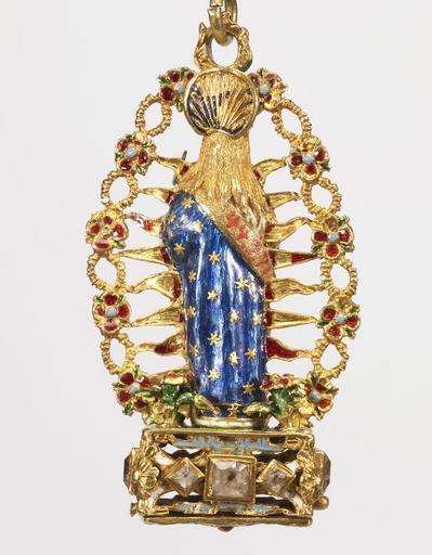 Keywords: Spanish - Reliquary Pendant with the Virgin and Child in Glory - Walters 44271 - Back.jpg Encrusted enamels set with jewels ca 1525 1550 Renaissance gold enamel diamonds cm 7 3 5 accession number 44 271 34749 Henry Walters city Baltimore in Paris Walters Art Museum Henry Walters Acquired by Henry Walters 1927 Jewelry - Ancient to Modern The Walters Art Gallery Baltimore 1979-1980 Objects of Adornment Five Thousand Years of Jewelry from the Walters Art Gallery Baltimore Cooper-Hewitt National Design Museum New York; Chrysler Museum of Art Norfolk; Carnegie Museum of Art Pittsburgh; San Antonio Museum of Art San Antonio; Philbrook Museum of Art Tulsa; Honolulu Academy of Arts Honolulu; New Orleans Museum of Art New Orleans; Milwaukee Art Museum Milwaukee; Minneapolis Institute of Arts Minneapolis; Toledo Museum of Art Toledo; The John and Mable Ringling Museum of Art Sarasota 1984-1987 Jewelry from the Walters Art Museum and the Zucker Family Collection The Walters Art Gallery Baltimore 1987 place of origin Spain Walters Art Museum license Renaissance applied arts in the Walters Art Museum Jewellery of Spain Media contributed by the Walters Art Museum needs category review Madonna and Child |