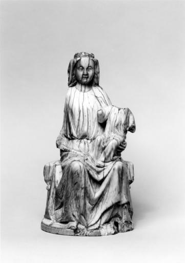 Keywords: Spanish - Virgin and Child - Walters 7186.jpg A small seated Virgin with deep folds in her skirt holds a seated Christ Child with her left hand Her head was fitted for a metal crown The right arm of the Virgin and the head right hand and left lower arm of the Child are missing The crown is missing and there is a large chip in the base below the left foot 2nd half Other date century 13 Medieval ivory cm 15 accession number 71 86 19588 Léon Gruel Paris date and mode of acquisition unknown Henry Walters city Baltimore Walters Art Museum Henry Walters Acquired by Henry Walters 1914 place of origin Spain Walters Art Museum license Medieval ivory in the Walters Art Museum Art of Spain Media contributed by the Walters Art Museum needs category review Sculptures of Madonna and Child |