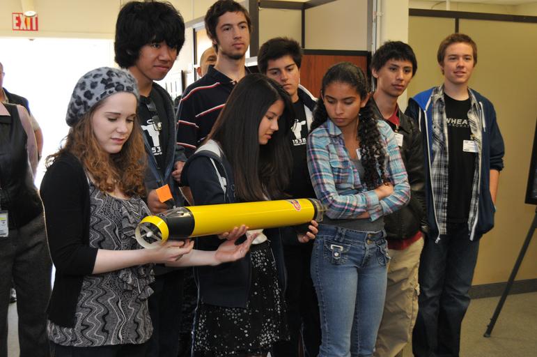 | Keywords: SPAWAR hosts Federal IT Shadow Day for high tech high school students 120308-N-UN340-054.jpg en San Diego area high school inspect a Autonomous Underwater Vehicle while touring Space and Naval Warfare Systems Center Pacific ™s Unmanned Maritime Vehicle lab as part of their IT Shadow Day itinerary Federal Information Technology IT Shadow Day provides high school students a unique opportunity to observe the federal IT workforce and learn about professional careers in the IT field As the Navy's Information Dominance Systems Command SPAWAR supports robotics development and strongly encourages all students to explore careers in science technology engineering and mathematics STEM fields <br>Unit Space and Naval Warfare Systems Command 2012-03-08 Rick Naystatt https //www dvidshub net/image/538036/spawar-hosts-federal-shadow-day-high-tech-high-school-students 120308-N-UN340-054 2012-03-08 20 29 SAN DIEGO CA US PD-USGov-Military-Navy Autonomous underwater vehicles Images from DoD uploaded by Fæ |