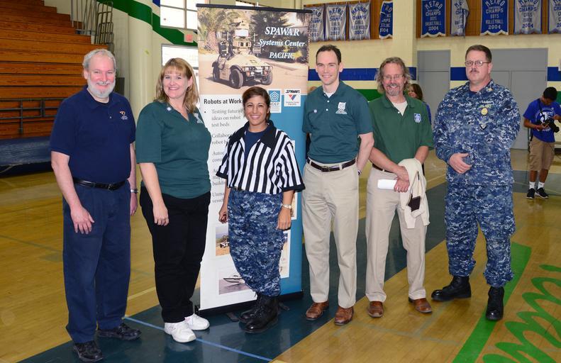 | Keywords: SPAWAR supports next-generation of innovators through robotics mentorship 141116-N-RV956-174.jpg en Stephen Russell Space and Naval Warfare Systems Command chief technology officer; Wanda Parise Space and Naval Warfare Systems Center Pacific employee and coordinator of the FLL Qualifying Tournament; SSC Pacific Executive Officer Capt Gisele Bonitz; SSC Pacific Guam Detachment Officer in Charge Lt Cmdr Jerome McConnon; SSC Pacific Outreach Director Jim Rohr; and SSC Pacific Command Master Chief Rose Rulon volunteered their time at the For Inspiration and Recognition of Science and Technology Lego League Qualifying Tournament at East Lake High School in Chula Vista Calif Nov 16 2014 SPAWAR co-hosted the sixth annual FLL Qualifying Tournament with more than 40 SPAWAR volunteers serving as coaches mentors judges and referees to the 22 FLL teams participating in the event 2014-11-16 Left to right https //www dvidshub net/image/1680638 141116-N-RV956-174 2014-12-01 17 31 SAN DIEGO CA US PD-USGov-Military-Navy Space and Naval Warfare Systems Command Images from DoD uploaded by Fæ |
