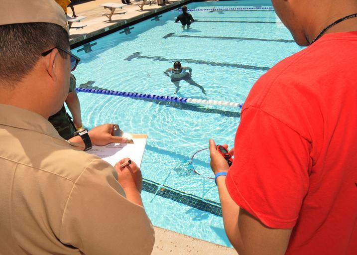 | Keywords: SPAWAR supports SeaPerch San Diego STEM event 130427-N-UN340-008.jpg en U S Navy Lt Monique Crewes center in pool a Lead Software Engineer assigned to Space and Naval Warfare Systems Center Pacific SSC Pacific observes as timers and judges score a SeaPerch Remotely Operated Vehicle's ROV navigation through the obstacle course portion of the San Diego Regional SeaPerch Competition at Grossmont College SeaPerch sponsored by the Office of Naval Research ONR is an innovative underwater robotics program that trains teachers to teach their late elementary through high school students how to build ROVs from low-cost kits Crewes and several Space and Naval Warfare Systems Command SPAWAR personnel volunteered as judges timekeepers and in-water assistants at the event As the Navy's Information Dominance Systems Command SPAWAR supports robotics development and strongly encourages all students to explore careers in science technology engineering and mathematics STEM fields U S Navy photo by Rick Naystatt /Released 2013-04-27 Rick Naystatt https //www dvidshub net/image/919374 130427-N-UN340-008 2013-05-01 12 16 SAN DIEGO CA US PD-USGov-Military-Navy Space and Naval Warfare Systems Command Office of Naval Research Images from DoD uploaded by Fæ |