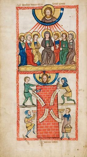 | Keywords: Speculum Darmstadt 2505 64v.jpg  Speculum Humanae Salvationis Westfalen oder Köln um 1360 ULB Darmstadt Hs 2505 fol 64v http //tudigit ulb tu-darmstadt de/show/Hs-2505 ULB Darmstadt ~ 1360 anonymous PD-old-100 ULB Darmstadt Hs 2505 Miniatures of Pentecost Tower of Babel in medieval miniature Masons in art Construction of buildings in medieval miniature |