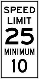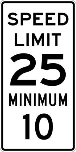 | Keywords: Speed Limit 25 Minimum 10 sign.svg 600 mm by 1200 mm 24 in by 48 in Combined Speed Limit sign made to the specifications of the http //mutcd fhwa dot gov/SHSm/regulatory pdf 2004 edition of Standard Highway Signs sign R2-4a Uses the http //www triskele com/fonts/index html Roadgeek 2005 fonts United States law does not permit the copyrighting of typeface designs and the fonts are meant to be copies of a U S Government-produced work anyway The outside border has a width of 1 1 mm and a color of black so it shows up; in reality signs have no outside border own Ltljltlj User Ltljltlj/Template minimum R2-4 - Minimum Speed 2510 Number 10 on speed limit road signs 25 number |