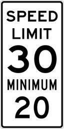 | Keywords: Speed Limit 30 Minimum 20 sign.svg 600 mm by 1200 mm 24 in by 48 in Combined Speed Limit sign made to the specifications of the http //mutcd fhwa dot gov/SHSm/regulatory pdf 2004 edition of Standard Highway Signs sign R2-4a Uses the http //www triskele com/fonts/index html Roadgeek 2005 fonts United States law does not permit the copyrighting of typeface designs and the fonts are meant to be copies of a U S Government-produced work anyway The outside border has a width of 1 1 mm and a color of black so it shows up; in reality signs have no outside border own Ltljltlj User Ltljltlj/Template minimum R2-4 - Minimum Speed 3020 20 number 30 number |