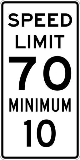 Keywords: Speed Limit 70 Minimum 10 sign.svg 600 mm by 1200 mm 24 in by 48 in Combined Speed Limit sign made to the specifications of the http //mutcd fhwa dot gov/SHSm/regulatory pdf 2004 edition of Standard Highway Signs sign R2-4a Uses the http //www triskele com/fonts/index html Roadgeek 2005 fonts United States law does not permit the copyrighting of typeface designs and the fonts are meant to be copies of a U S Government-produced work anyway The outside border has a width of 1 1 mm and a color of black so it shows up; in reality signs have no outside border own Ltljltlj User Ltljltlj/Template minimum R2-4 - Minimum Speed 7010 70 number Number 10 on speed limit road signs