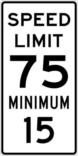 | Keywords: Speed Limit 75 Minimum 15 sign.svg 600 mm by 1200 mm 24 in by 48 in Combined Speed Limit sign made to the specifications of the http //mutcd fhwa dot gov/SHSm/regulatory pdf 2004 edition of Standard Highway Signs sign R2-4a Uses the http //www triskele com/fonts/index html Roadgeek 2005 fonts United States law does not permit the copyrighting of typeface designs and the fonts are meant to be copies of a U S Government-produced work anyway The outside border has a width of 1 1 mm and a color of black so it shows up; in reality signs have no outside border own Ltljltlj User Ltljltlj/Template minimum R2-4 - Minimum Speed 7515 75 number 15 number |