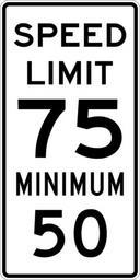 | Keywords: Speed Limit 75 Minimum 50 sign.svg 600 mm by 1200 mm 24 in by 48 in Combined Speed Limit sign made to the specifications of the http //mutcd fhwa dot gov/SHSm/regulatory pdf 2004 edition of Standard Highway Signs sign R2-4a Uses the http //www triskele com/fonts/index html Roadgeek 2005 fonts United States law does not permit the copyrighting of typeface designs and the fonts are meant to be copies of a U S Government-produced work anyway The outside border has a width of 1 1 mm and a color of black so it shows up; in reality signs have no outside border own Ltljltlj User Ltljltlj/Template minimum R2-4 - Minimum Speed 7550 75 number 50 number |