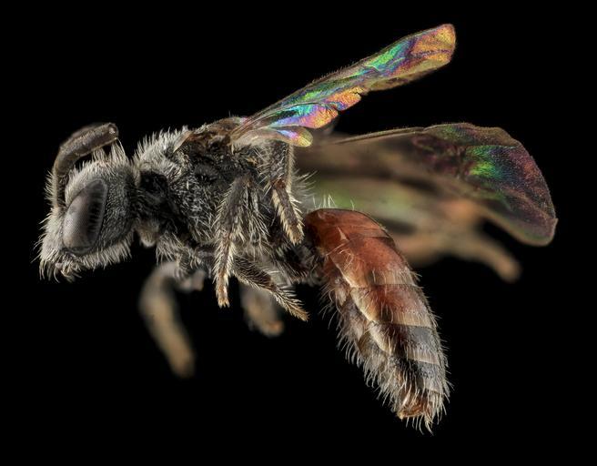 | Keywords: bug bugs bee bees pollinator pollinators animal animals animalia arthropod arthropods arthropoda insect insects insecta hymenoptera aculeata anthophila apoidea halictidae halictid halictid bee halictidbee sweat bee sweatbee sweat bees sweatbees halictinae halictini sphecodes taxonomy:binomial=sphecodes brachycephalus taxonomy:binomial=sphecodesbrachycephalus sphecodes brachycephalus sphecodesbrachycephalus biml usgs droege north carolina northcarolina sandhills usgsbiml black background photo border depth of field Another Heather Campbell collected bee from the Sandhills, this one a nest parasite, likely on something in the genus Lasioglossum, a very small bee...Check out the WIPs in the wing (Wing Interference Patterns) quite lovely .... these usually occur only in the most delicate of bees wings. Canon Mark II 5D, Zerene Stacker, Photographer: Sam Droege, 65mm Canon MP-E 1-5X macro lens, Twin Macro Flash, F5.0, ISO 100, Shutter Speed 200 Another Heather Campbell collected bee from the Sandhills, this one a nest parasite, likely on something in the genus Lasioglossum, a very small bee...Check out the WIPs in the wing (Wing Interference Patterns) quite lovely .... these usually occur only in the most delicate of bees wings. Canon Mark II 5D, Zerene Stacker, Photographer: Sam Droege, 65mm Canon MP-E 1-5X macro lens, Twin Macro Flash, F5.0, ISO 100, Shutter Speed 200 |