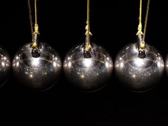 Keywords: spherical ball joint pendulum balls metal silver shiny play toys spherical ball newton pendulum newton cradle suspended pendant series click clack edme mariotte physics experiment pulse momentum conservation conservation of momentum elastic joints kinetic energy shock