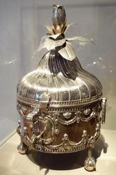 | Keywords: Spice box (yerbera), maker unknown, Peru, c. 1775-1800, silver - De Young Museum - DSC00995.JPG en Exhibit in the De Young Museum San Francisco California USA This artwork is in the public domain because the artist died more than 70 years ago Photography was permitted in the museum without restriction 2013-11-05 16 31 27 own Daderot other versions cc-zero Metalwork in the De Young Museum Uploaded with UploadWizard Mate beverage Metalwork of Peru | ||||