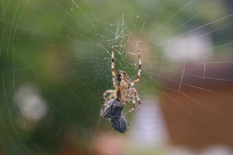 Keywords: spider fly spider network eat prey autumn nature