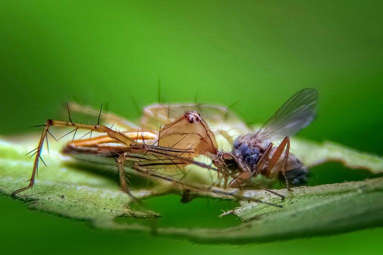 Keywords: spider hunter prey insect predator animal arachnid nature wildlife macro feeding legs wild catch victim close hunting arthropod