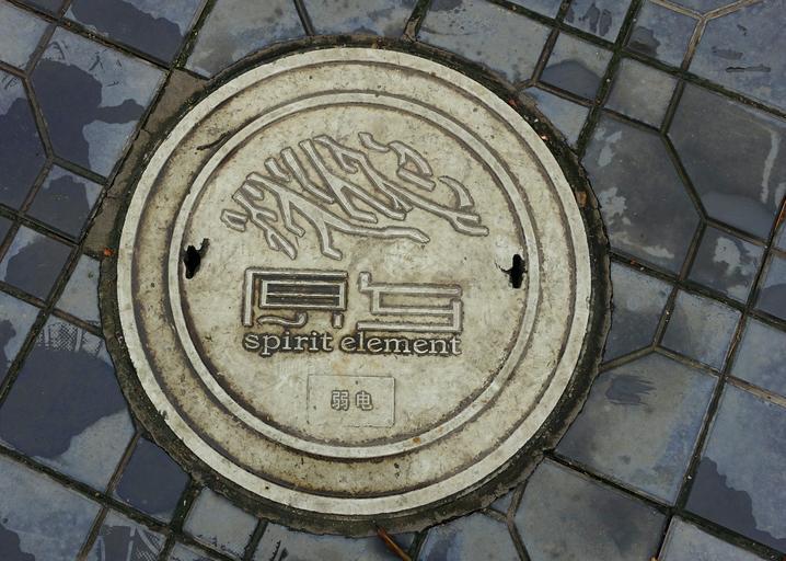 Keywords: Spirit Element manhole cover - Chengdu, China - DSC03722.JPG en Spirit Element manhole cover - Chengdu China 2015-09-23 21 44 12 own Daderot other versions cc-zero Uploaded with UploadWizard Chengdu Manhole covers in China