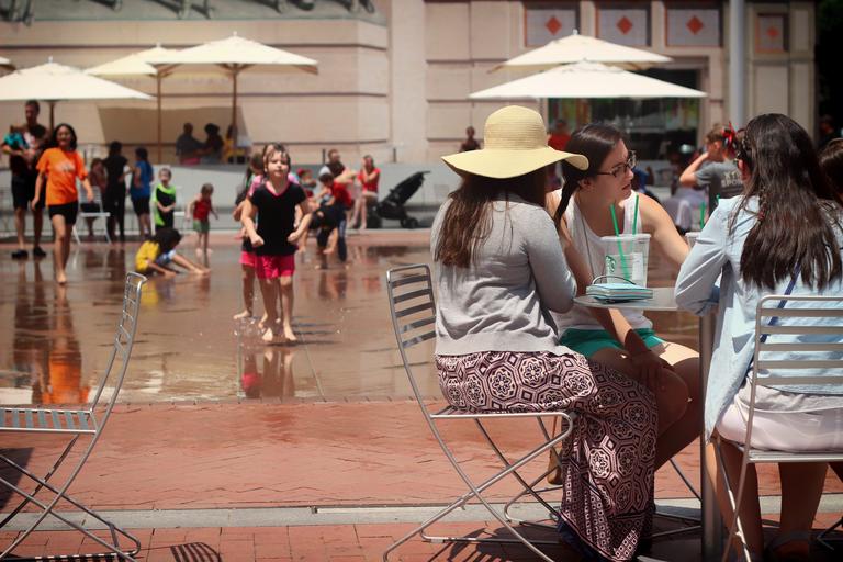 Keywords: splash kid children happy women group family outdoors public kids playing boy crowd play