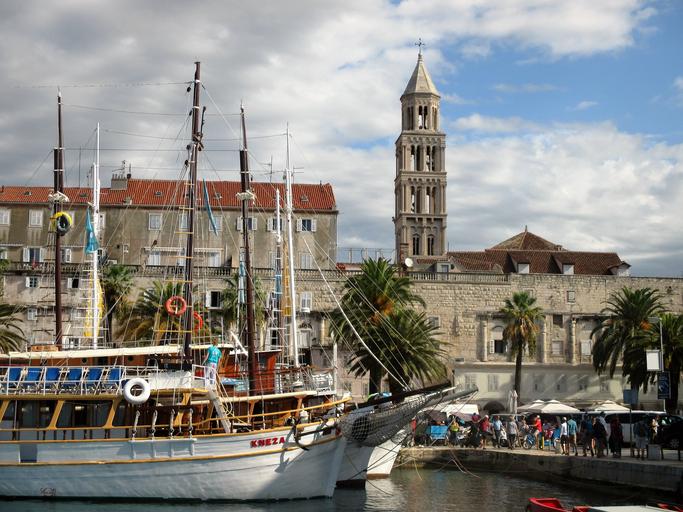 Keywords: exterieur mer port split croatie bateaux egmise ciel bleu outdoor skyline city architecture water waterfront vehicle boat