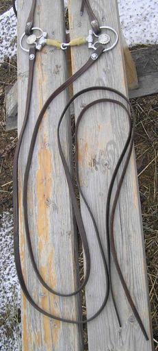 Keywords: SplitReins.jpg A set of western-style split reins attached to a snaffle bit Own 2007-02-04 Montanabw Check categories 2008 November 8 Horse tack Snaffle bits Reins