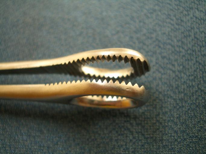 Keywords: Sponge Rampley Forceps Clamp 01.JPG en Sponge forceps also known as sponge holding forceps are used for holding swabs or sponges in medical procedures Normally they are constructed in a scissor shape with ratcheted handles and looped smooth or serrated jaws A sponge forcep may be curved or straight depending on its specific purpose 2013-01-28 16 58 20 own Saltanat cc-zero Uploaded with UploadWizard Foerster clamp |