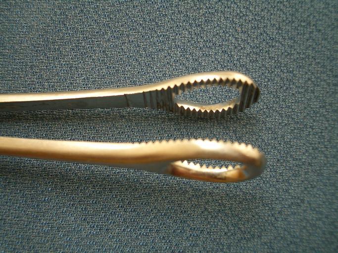 Keywords: Sponge Rampley Forceps Clamp 05.JPG en Sponge forceps also known as sponge holding forceps are used for holding swabs or sponges in medical procedures Normally they are constructed in a scissor shape with ratcheted handles and looped smooth or serrated jaws A sponge forcep may be curved or straight depending on its specific purpose 2013-01-28 17 00 47 own Saltanat ebli cc-zero Uploaded with UploadWizard Foerster clamp |