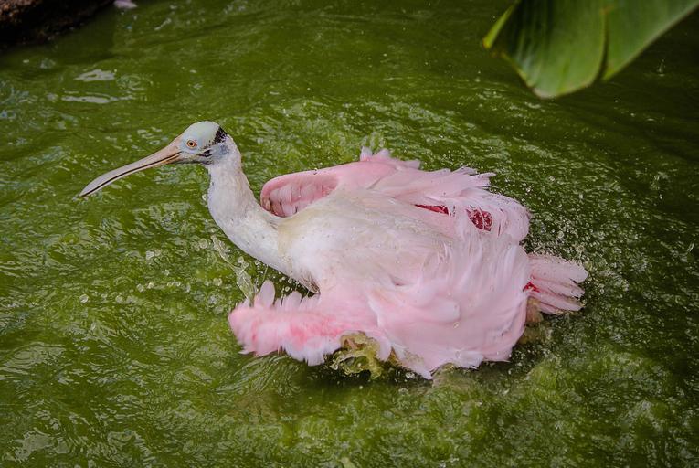 Keywords: spoonbill crane roseate spoonbill bird water bird bathing bath