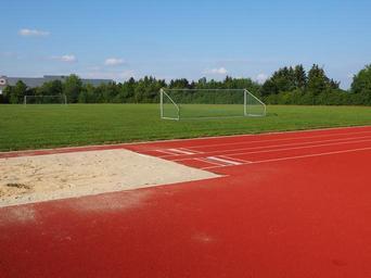 Keywords: sports ground football field long jump pit sand mark athletics performance sport start three jump competition fitness bless you training acrobatics fast high far