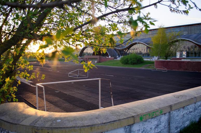 Keywords: sports stadium running football sunset sun sky tree chestnut silence gate goalkeeper reflection